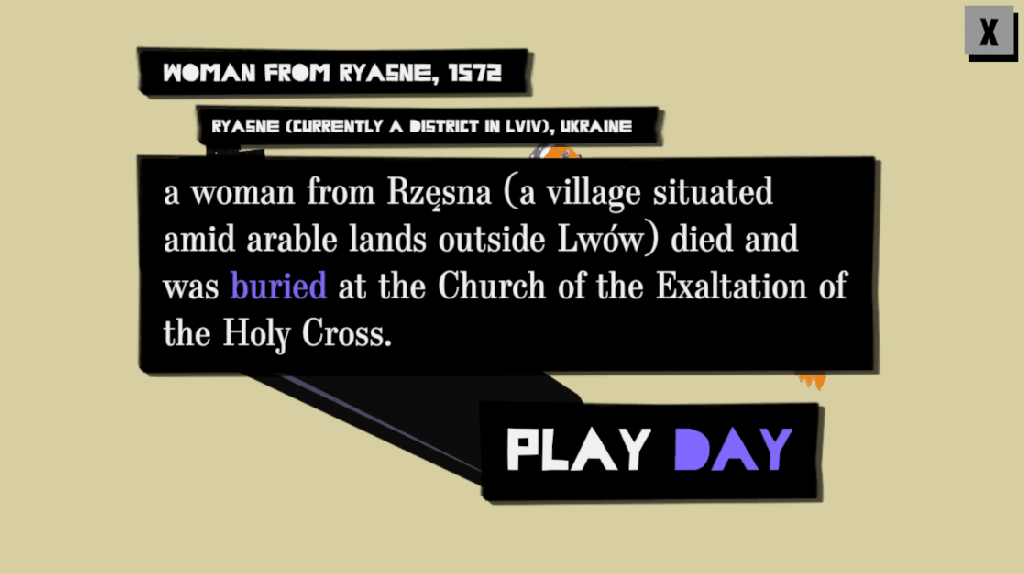 Each level has different functionality and is inspired by a text from the book. The text is displayed at the start of the level and is read aloud by the author. When you win a level, the text ‘Night continues!’ or ‘Day continues!’ is displayed, depending on which line you are playing. When you lose, ‘continues’ is replaced by ‘ends.