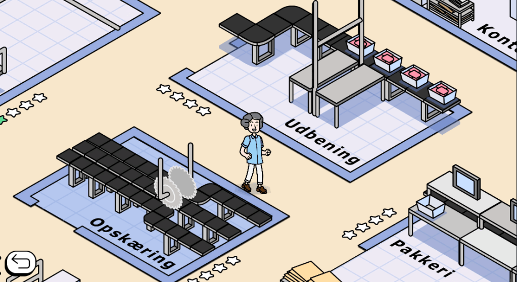 WorkDPlays – Slagterispillet is a game designed to teach Danish to non-Danish-speaking employees working at Danish slaughterhouses. By playing four different mini-games, players learn words associated with the tasks that a slaughterhouse employee needs to perform. By exposing players to the same words multiple times in a gamified setting, the idea is that employees will remember them better, making it easier for them to work in a Danish-speaking environment.